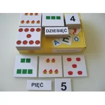 Zestaw ten służy do kształtowania pojęcia równoliczności zbiorów, pojęcia liczby, nauki czytania pełnymi wyrazami (czytanie globalne) liczebników głównych, oraz zaznajomienie się z cyframi.