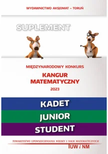 Testy konkursu międzynarodowego "KANGUR MATEMATYCZNY" dla poziomów Kadet, Junior oraz Student, wraz z odpowiedziami i rozwiązaniami tylko z roku 2023. Skład kolorowy. Ta książka jest uzupełnieniem (suplementem) do książek z serii "Matematyka z wesołym kangurem" z poziomu Kadet, Junior i Student. W książce znajdziesz: Testy konkursu międzynarodowego "Kangur Matematyczny" tylko z roku 2023 wraz z odpowiedziami!