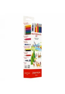 Metalowy piórnik XL zawiera 8 kredek Swisscolor, 1 kredkę/zakreślacz Fluo, 1 ołówek HB Edelweiss, kredkę Graphicolor żółto/czarną, pędzelek z pojemnikiem na wodę, długopis 825, gumkę i podwójną temperówkę.