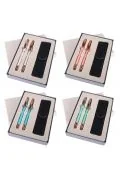 Miks wzorów, towar wysyłany losowo. Cena za sztukę. Model zestawu piśmiennego MASTER w atrakcyjnej kolorystyce ze złotymi wykończeniami. Kolekcja obejmuje pióro wieczne ze stalówką irydową oraz długopis. Pióro wieczne ze stalówką irydową zasilane standardowymi nabojami.