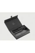 Eleganckie, oryginalne pudełko prezentowe marki Parker. Pudełko w oryginalnym szarym kolorze Parker ze złotymi elementami. Na wieczku wytłoczone logo marki Parker. Wewnątrz pudełka znajdziemy czarne, oryginalne etui Parker wykonane ze skóry naturalnej. Zamykane na szlufkę.
