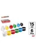 Nietoksyczna farba szkolna. Dostępne są w 6 butelkach w różnych kolorach po 15 ml każda, połączonych ze sobą, aby się nie zgubić. Świetne kolory i świetne krycie. Można je ze sobą mieszać uzyskując szeroką paletę kolorów. Klasyczne kolory: