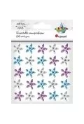 Kryształki samoprzylepne kwiaty 18 mm srebrne, błękitne, wrzosowe 25 szt.