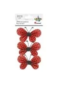 Dekoracje samoprzylepne papierowe.Wzór motyle.Czułki z drucika.Wymiar 65 x 45 mm.Kolor czerwone w kropki.Blister 3 sztuki.Karton 192 szt.
