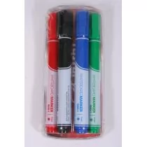Zestaw profesjonalnych markerów do map ściennych, pokrytych laminatem błyszczącym, wyposażony w okrągłą fibrową końcówkę piszącą. Łatwo wymazywalne. Tusz spełnia normę EN 71-9 oraz ASTM D-4236, oraz posiada trzydniowy system ,,cap-off".