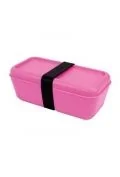 Prostokątny pojemnik w kolorze różowym, z serii Sunset. Posiada wewnętrzną przegrodę, która umożliwia rozdzielenie dwóch rodzajów żywności w tym samym pojemniku oraz czarną zewnętrzną elastyczną opaske silikonową. Nadaje się do podgrzewania w kuchence mikrofalowej (maks. 70...