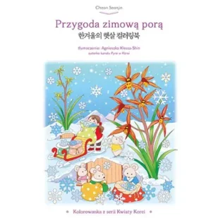 Poczuj magię świąt z relaksującymi kolorowankamiWspólnie z gromadką zwierząt przeżyj niezwykłe przygody w promieniach zimowego słońca. Zadbaj o świąteczny nastrój, dekorując dom pięknymi gwiazdami betlejemskimi, spędź czas z króliczkami w cieniu krzewów osmantusa i zaszalej w śniegu przy zapachu zimokwiatów – dołącz do tej wesołej paczki!Dzięki serii Kwiaty Korei poznasz sekretny język kwiatów i odprężysz się, kolorując urocze, inspirowane tradycyjnym wzornictwem koreańskim ilustracje. Najpiękniejsze kwiaty Korei kwitną nawet zimą