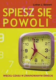 Czujesz się zagoniony i masz wrażenie, że twoje codzienne życie staje się coraz bardziej gorączkowe$656 Zadajesz sobie pytanie, jak to stałe przyśpieszanie zgrać z potrzebą czasu wolnego i spokoju, jak pogodzić wyzwania zawodowe z twoimi dążeniami w życiu prywatnym$657 Czołowy ekspert w dziedzinie zarządzania czasem Lothar J. Seiwert pokaże ci, dlaczego oszczędzanie czasu od dawna już nie wystarcza: zarządzanie czasem należącym do przyszłości oznacza całościowe zarządzanie własną osobą oraz aktywne kształtowanie swojego życia. Książka obejmuje między innymi: - rozwijanie wizji, wzorców, projektowanie celu życia - ustanawianie ról w życiu - efektywne cotygodniowe planowanie priorytetów - wydajne wykonywanie codziennej pracy.