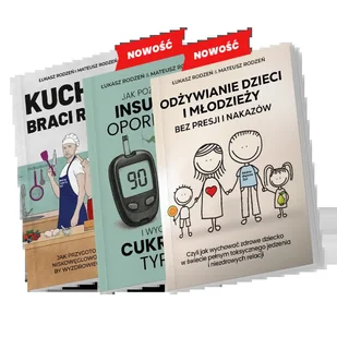 Bestsellery Braci Rodzeń – Łukasz Rodzeń, Mateusz Rodzeń Te 3 książki napisaliśmy z myślą o wszystkich osobach, które chcą pozbyć się insulinooporności, wycofać cukrzycę typu 2, ale nie tylko. To niezależna, która ma moc nie tylko wycofywania chorób, a także daje spokój każdemu rodzicowi i pewność, że wychowa zdrowe i szczęśliwe dziecko — bez presji i nakazów. Książka „Jak pozbyć się insulinooporności i wycofać cukrzycę typu 2” to praktyczny poradnik pokazujący krok po kroku, jak to osiągnąć. A pozbyć się insulinooporności trzeba, bo to właśnie ona jest przyczyną wszystkich chorób metabolicznych — cukrzycy typu 2, nadciśnienia tętniczego, stłuszczenia wątroby i wielu nowotworów. Co więcej, nieleczona odpowiednio insulinooporność to większe ryzyko depresji, zawału serca i udaru.