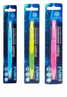 Automatyczny długopis Astrapen Simple posiada ergonomiczny uchwyt, zapewniający wysoki komfort użytkowania. Dzięki nowoczesnemu wzornictwu, żywej i intensywnej kolorystyce sprawdzi się idealnie zarówno w szkole, na uczelni, jaki i w biurze.