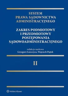 System Prawa Sądownictwa Administracyjnego T. 2Wolters Kluwer ➡️ Literatura / Prawo ✔️ Drugi tom Systemu Prawa Sądownictwa Administracyjnego stanowi kontynuację badań nad istotą sądownictwa administracyjnego. Obejmuje on zagadnienia dotyczące przedmiotu sądowej kontroli administracji publicznej oraz podmiotów, które biorą udział w postępowaniu przed sądem administracyjnym. Przedstawione w nim zostały zagadnienia dotyczące istoty każdego rodzaju aktu i czynności poddanych sądowej kontroli, w tym decyzji administracyjnej, różnych form bezczynności oraz przewlekłego prowadzenia postępowania administracyjnego. W oddawanym do rąk czytelników tomie znajduje się także pogłębiona analiza uprawnień procesowych poszczególnych podmiotów, które biorą udział w postępowaniu sądowoadministracyjnym, począwszy od skarżącego, a skończywszy na sądzie, przed którym toczy się postepowanie.