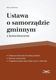 Publikacja zawiera szczegółową analizę wszystkich artykułów ustawy z 8 marca 1990 r. o samorządzie gminnym z wykorzystaniem kluczowych orzeczeń sądów, rozstrzygnięć administracyjnych oraz tez doktryny. Książka omawia nie tylko obecne przepisy, lecz także zmiany, które wejdą w życie od 1 stycznia 2016 r.