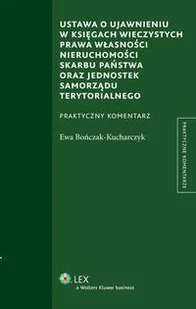 Jest to obecnie jedyny na rynku komentarz do ustawy o ujawnieniu w księgach wieczystych prawa własności nieruchomości Skarbu Państwa oraz jednostek samorządu terytorialnego. Został w nim także dokonany gruntowny przegląd przepisów, na podstawie których mogło w przeszłości nastąpić w księdze wieczystej przejście własności nieruchomości na Skarb Państwa lub jednostkę samorządu terytorialnego - do dziś nieujawnione. Książka zawiera analizę nie tylko przepisów ustawy, lecz także różnych kwestii proceduralnych związanych z procesem ujawniania własności publicznych nieruchomości. Adresaci: Publikacja przeznaczona jest przede wszystkim dla osób, które zajmują się nieruchomościami Skarbu Państwa i jednostek samorządu terytorialnego, w tym również dla prawników.