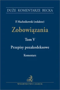 Zobowiązania. Komentarz. Tom V. Przepisy pozakodeksowe to piąta część pięciotomowego dzieła stanowiącego kompleksowe i praktyczne omówienie kodeksowego i pozakodeksowego prawa zobowiązań wraz ze ściśle powiązanymi z nim zagadnieniami części ogólnej prawa cywilnego. W piątym tomie omówiono przepisy pozakodeksowe z zakresu prawa zobowiązań.