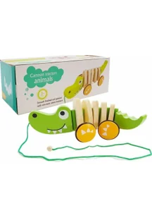 Uroczy, uśmiechający się krokodyl podąży za dzieckiem, gdziekolwiek ono pójdzie, wystarczy że będzie trzymało sznureczek. Zabawka na kółeczkach do ciągania to wspaniała zabawka dla dzieci od najmłodszych lat życia. Pomaga przy nauce chodzenia i stawianiu pierwszych kroków. Zabawka wykonana została z wysokiej jakości drewna, dzięki czemu jest wytrzymała i odporna na uszkodzenia. Pomalowano ją nietoksycznymi farbami, które są bezpieczne dla dzieci. Zabawka rozwija umiejętność poruszania się, zdolności motoryczne, poznawcze oraz zręczność. Ciągnięty na sznurku piękny zielony aligator charakterystycznie się wygina co urozmaica zabawę.