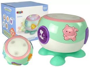 Muzyczny Bębenek Melodie Światła Piosenki Zwierzątka Turkusowy Interaktywna zabawka, w postaci bębenka, dla maluszków zapewni mnóstwo wesołej zabawy każdemu dziecku. Na zabawce przedstawione są zwierzątka. Zabawka wykonana jest z plastiku, w uroczych kolorowych barwach. Membrana perkusji wykonana jest z miękkiego materiału, dzięki czemu dziecko będzie mogło bezpiecznie w nią uderzać. Zabawka pozytywnie wpływa na rozwój dziecka. Dzieci poznają kształty i kolory. Przez pierwszy dotyk, odkrywają otaczający ich świat i doskonalą swoje umiejętności. Zachęci do poprawiania motoryki, uczy nowych ruchów oraz umiejętności. Niekończąca się zabawa w rytm melodii. Cechy charakterystyczne zabawki: - bębenek obraca się o 360 stopni - małpka odtwarza historię w języku angielskim - okrągły przycisk z żyrafą- odtwarza odgłosy zwierząt ( koń, kot, małpka, żaba, ptaszek, kaczka) - trójkąt odtwarza różne piosenki w języku angielskim - kotek wymienia 26 liter po angielsku - piesek posiada aż 100 różnych melodii m.in Happy Birthday - białe i żółte światło miga wraz z muzyką - diody (czerwona, zielona, niebieska) wewnątrz górnej części bębenka pulsują wraz z muzyką Zabawka zawiera instrukcje i rozpiskę utworów w języku angielskim. Pielęgnuj w swoim dziecku zmysł muzyczny! Baw się z nim i pokaż mu świat! Wymiary bębenka: - średnica: 22 cm - wysokość:17 cm Wymiary pudełka: 21 cm x 21 cm x 21 cm Zabawka przeznaczona jest dla dzieci powyżej 12 miesiąca życia. Do uruchomienia zabawki potrzeba 3 baterii AAA 1.5V (brak w zestawie). Bębenek interaktywny jest zapakowany w kartonowe pudełko, dzięki czemu idealnie nadaje się na prezent dla nowego członka rodziny.