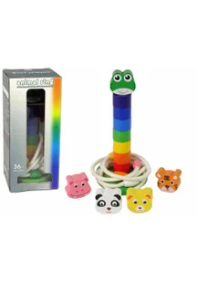 Piramidka Drewniana Edukacyjna Układanka Sznurek Zwierzęta Piramidka Edukacyjna to klasyczna i wielopokoleniowa zabawka dla najmłodszych. W trakcie zabawy na twarzy twojego dziecka pojawi się uśmiech, sprawi dużo radość i kreatywnie pozwoli mu spędzać czas. Zestaw klocków posiada podstawkę i klocki w różnych kolorach, co stymuluje zmysł wzroku malucha. Na samym szczycie znajduje się główka słodkiej żabki lub pandy, do wyboru jeszcze trzy inne wzory. W podstawie umieszczony jest bolec do nakładania elementów. Twój maluch może układać wieże według kolorów, może uda mu się ich nauczyć. Sznurki również posiadają różne kolorystycznie łączenia. Układanka daje możliwość wielu konfiguracji, wpływając przy tym na wyobraźnie dziecka. Zabawka wykonana jest z wysokiej jakości drewna, a wszystkie elementy zostały dokładnie oszlifowane i pomalowane na żywe kolory bezpiecznymi farbami. Zabawki drewniane są wyjątkowo trwałe i odporne na uszkodzenia, dzięki czemu posłużą latami w nienaruszonym stanie. Elementy zestawu: - podstawka - 7 kolorowych klocków - 5 kolorowych sznurków - 5 głów zwierzątek Wymiary piramidki: 10 cm średnica 18 cm wysokości Wymiary opakowania: 10 cm x 10 cm x 23 cm Drewniana gra przeznaczona jest dla wszystkich dzieci powyżej 3 roku życia. Zabawka posiada certyfikat CE, a jej produkcja jest zgodna z obowiązującą normą EN 71.