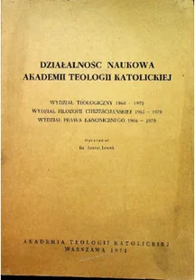 Tytuł: Działalność naukowa Akademii Teologii Katolickiej Antoni Lewek Rok wydania: 1971 Rodzaj okładki: Miękka Autor: Antoni Lewek Wydawca: Akademia Teologii...