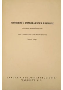 Tytuł: Posoborowe prawodawstwo kościelne Edward Sztafrowski Rok wydania: 1972 Rodzaj okładki: Miękka Autor: Edward Sztafrowski Wydawca: Akademia Teologii Kat...