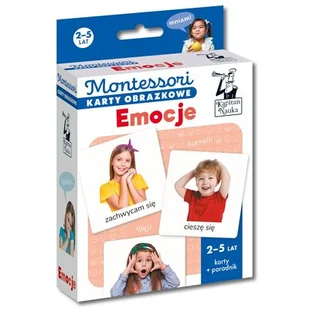 Montessori. Karty obrazkowe (2-5 lat). Kapitan Nauka, stawiasz na sprawdzone rozwiązanie, które sprosta Twoim oczekiwaniom Co robisz, gdy czujesz radoœæ? Czy nuda to przyjemne uczucie? Inspirowane metod¹ Montessori karty obrazkowe pomagaj¹ oswoiæ dzieciêce emocje i o nich rozmawiaæ. Radoœæ, smutek, zachwyt, zaskoczenie, têsknota i 12 innych emocji. Maluchy ucz¹ siê je rozró¿niaæ i nazywaæ.