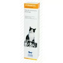 Embonian pyrantelu - 9,3 g/100 g WSKAZANIA Robaczyce jelitowe u kotów wywołane przez wrażliwe na działanie leku formy dorosłe robaków, takich jak: Toxocara cati, Toxascaris leonina, Ancylostoma tubaeforme, Unicinaria stenocephala. PRZECIWWSKAZANIA Sporadycznie mogą wystąpić u młodych zwierząt nudności i wymioty. Działania niepożądane nasilają środki fosforoorganiczne i dietylkarbaminiany, stosowane często jako środki biobójcze przeciw ektopasożytom. STOSOWANIE W przeliczeniu na embonian pyrantelu - jednorazowo 57,7 mg/kg mc.