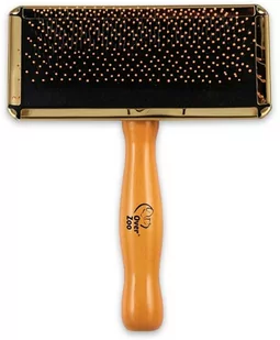 Dzięki stalowym, lekko wygiętym igłom doskonale sprawdza się do rozczesywania splątanej sierści, kołtunów oraz wyczesywania martwego podszerstka. Gumowa poduszka amortyzuje nacisk dzięki czemu szczotka lepiej rozczesuje włos i nie podrażnia skóry zwierzęcia. Plastikowe kulki na końcach igieł zabezpieczają dodatkowo przed podrażnieniem skóry. Ergonomiczny, drewniany uchwyt ułatwia rozczesywanie.
