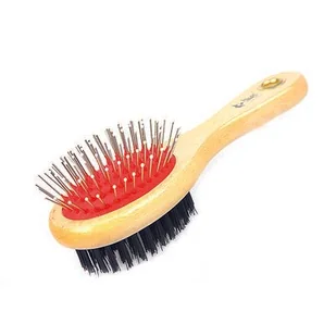 Szczotka drewniana owalna dwustronna S igły metalowe z kulkami + włosie PVC Dingo