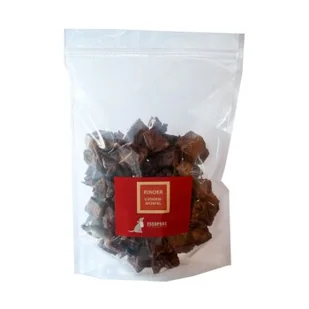 Prosimy zaoferować swojemu psu pyszną przekąskę o intensywnym smaku, który w naturalny sposób czyści zęby. Kostki z płuc wołowych Escapure były delikatnie wysuszone w bukowym drewnie do 16 dni, nie kruszą się i zawierają pełny aromat. To idealna nagroda dla psa podczas zabawy, zajęć sportowych i radosnych chwil, która wspomaga higienę zębów. Kostki z płuc wołowych zostały wykonane bez chemicznych środków konserwujących, barwników, substancji aromatyzujących i zboża, z ręcznie selekcjonowanych surowców, dzięki czemu są idealne dla alergików. Przekąska jest produktem czysto naturalnym, dlatego może się różnić kształtem lub barwą.