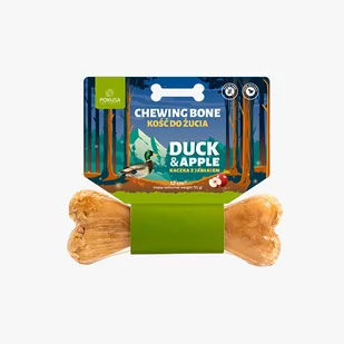Karma uzupełniająca dla psów dorosłych. Przechowywać w chłodnym i suchym miejscu. Podawać psu między posiłkami oraz zapewnić stały dostęp do świeżej, chłodnej wody. Zalecana ilość dzienna: 1-2 kości. FEEL THE WILD chewing bone DUCK & APPLE - kość do żucia Skład: