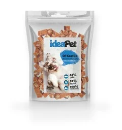 Kosteczki to wygodna forma przysmaku, którą łatwo można podać psu lub zabrać ze sobą w torebce na przysmaki. Wielkość pojedynczej kostki to ok. 2cm. Głównym składnikiem są zdrowe ryby, a co więcej brak jest chemicznych dodatków czy barwników. Przysmaki zamknięte są w strunowym opakowaniu, co umożliwia utrzymanie świeżości. Analiza: Białko surowe - 30,5% Włókno surowe - 1,7% Tłuszcz surowy - 0,5% Popiół surowy - 4% Wilgotność - 20% Skład: