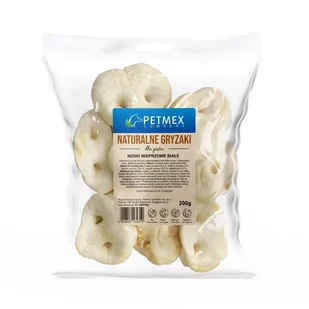 PETMEX noski wieprzowe białe. Smakowity gryzak dla wszystkich psów. Gryzienie noska wieprzowego znakomicie zaspokoi naturalną potrzebę żucia, tym bardziej, że jest to twarda przekąska. Taki smakołyk jest także pomocny w czyszczeniu zębów z płytki nazębnej i pomaga utrzymać uzębienie w doskonałym stanie. Materiał paszowy dla psów: