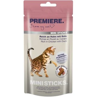 Dzięki przekąskom marki PREMIERE właściciele kotów mogą z czystym sumieniem rozpieszczać i nagradzać swoich ulubieńców. Wszystkie zalety w skrócie: Intensywnie mięsne miękkie mini-pałeczki bez dodatku wołowiny z ekstraktem z pestek winogron optymalnie porcjowana Karma uzupełniająca dla dorosłych kotów; dalsze informacje uzyskasz pod adresem: online-shopping@maxizoo. pl
