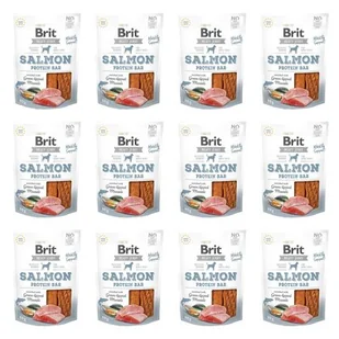 BRIT Jerky Salmon Protein Bar to karma uzupełniająca dla psów. Doskonałe jako nagroda podczas treningu. 85% kurczak i łosoś – dobre źródło wysokiej jakości białka. Wzbogacone o omułek zielonowargowy dla wsparcia mobilności. Naturalne przeciwutleniacze:
