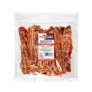 Wsparcie trawienia, higiena jamy ustnej Seria: Naturalne gryzaki Smak: Wieprzowina Rodzaj: Przysmak suszony (paski) Waga: 500g Stosowanie: