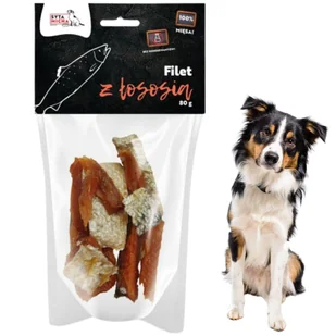 Syta Micha Suszone filety z łososia to najwyższej jakości, w 100 % naturalny przysmak, który dostarcza psu skoncentrowane źródło cennych kwasów omega-3, wspierających zdrową skórę, lśniącą sierść i prawidłowe funkcje serca. Dzięki delikatnemu procesowi suszenia zachowany został naturalny smak i aromat łososia, co sprawia, że nawet wybredne psy chętnie sięgają po każdy kęs. Suszone filety są wyrazistą przekąską o chrupiącej, ale jednocześnie łatwej do pogryzienia konsystencji, która pomaga w mechanicznym ścieraniu kamienia nazębnego. Przysmak nie zawiera sztucznych konserwantów, barwników ani dodatku soli — to czysta forma białka morskiej ryby. Syta Micha Suszone filety z łososia to połączenie wyjątkowego smaku i wartości odżywczych, idealne jako nagroda podczas treningu lub jako zdrowa przekąska między posiłkami.