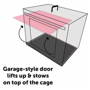 Kolor: czarny Materiał: stal Wymiary: 108 x 71,5 x 76 cm (szer. x gł. x wys.) Grubość drutu: 3/4/4,8 mm 1 drzwi przednie w stylu garażowych na zawiasach z zatrzaskiem zabezpieczającym 1 drzwi boczne na zawiasach z zatrzaskiem zabezpieczającym Wyjmowana plastikowa podstawa ułatwiająca czyszczenie Stopki ochronne Z uchwytem na górze Prosty montaż