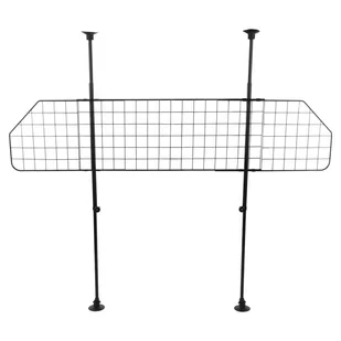 Kolor: czarny Materiał: metal Wymiary: 102-150 x 8 x 95-130 cm (szer. x gł. x wys.) Będzie pasować do większości marek pojazdów Produkt nie jest odpowiedni do samochodów terenowych Prosta instalacja pomiędzy podłogą a sufitem (z nóżkami)