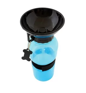Wytrzymałe i wygodne poidło podróżne dla zwierząt domowych. Świetnie sprawdzi się podczas spacerów i podróży. Dedykowane dla psów i kotów. Twój pupil na pewno nie pozostanie spragniony! Butelka wyposażona została w specjalną nakrętkę w formie miski, która napełnia się wodą podczas przyciskania bidonu! Poidło posiada dodatkowy uchwyt i pasek z rzepem, które umożliwiają jego wygodne przenoszenie.