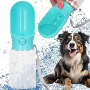 Butelka na wodę dla psa i kota, z poidełkiem i smyczą 340 ml turystyczna