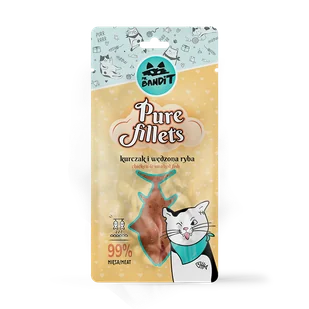 BANDIT Pure fillets kurczak i wędzona ryba 30g jest produktem, który nie ma sobie równych na rynku przysmaków dla kotów. Opracowany z myślą o zaspokojeniu kulinarnych preferencji najbardziej wybrednych łasuchów, gwarantuje zadowolenie każdego kota. Dzięki temu, że produkt jest bogaty w wysokiej jakości białko, stanowi idealne uzupełnienie codziennej diety kota, wspierając jego siłę i energię na co dzień. Kluczowe korzyści zdrowotne Wspiera zdrowie układu pokarmowego dzięki wysokiej strawności składników. Zawiera niezbędne kwasy tłuszczowe omega-3 i omega-6, które przyczyniają się do zdrowia skóry i blasku sierści.