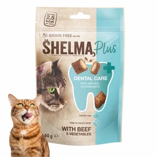 Nagradzaj swojego mruczka w najlepszy możliwy sposób - chrupiącymi poduszeczkami SHELMA Plus Dental, które łączą w sobie bogaty smak wołowiny i naturalną dobroć warzyw.