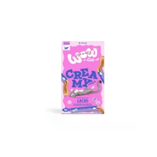 WOW CAT Creamy Snack lachs - kremowa przekąska z łososiem z delikatnymi kawałkami mięsa Delikatne kawałki łososia w delikatnym kremie rozpieszczą Twojego kota na najwyższym poziomie. Wyróżniają się bardzo wysoką akceptacją, idealne są do nagradzania, wzbogacenia smaku codziennych posiłków czy podania na matach do lizania. Przekąski pakowane są w wygodne saszetki (15g), z których można podać kotu bezpośrednio do wylizania. Przekąski są niskokaloryczne, jedna saszetka to tylko 7 kcal. W opakowaniu 5 saszetek po 15 g każda, pakowanych indywidualnie w celu praktycznego karmienia Z inuliną jako prebiotykiem wspierającym dobre bakterie jelitowe Dla kotów wszystkich ras i w każdym wieku Receptura o obniżonej kaloryczności, tylko 7 kalorii w saszetce Wyprodukowano bez dodatku zbóż, cukru i soli Skład: