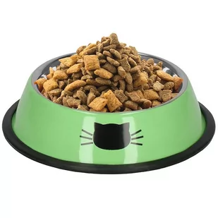 Miska dla kota została wykonana ze stali nierdzewnej pokrytej zieloną emalią, jest bardzo solidna i z pewnością posłuży przez długi czas. Kocia grafika, która dodaje uroku z pewnością ucieszy każdego ulubieńca kotów, a także nie pozostawi wątpliwości, czyja to miska. Wysokość miski wynosi ok. 4 cm, dzięki czemu świetnie sprawdzi się dla małych pupili.