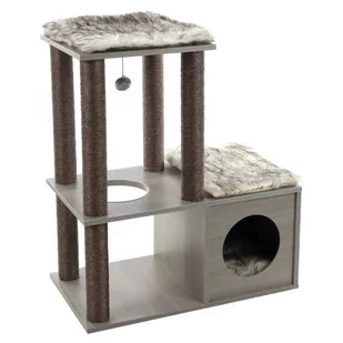 Drapak dla kota Adinda marki FLAMINGO to zabawny i praktyczny drapak dla kota, który zapewni Twojemu przyjacielowi niezliczone godziny zabawy. Drapak posiada dwa miejsca do odpoczynku i cztery słupki. Po zabawie kot może schować się w osłoniętym miejscu odpoczynku. Dobrze komponuje się z dowolnym wystrojem pomieszczenia dzięki czystym liniom i neutralnej kolorystyce. Poduszki z długim włosiem z pluszu można zdjąć i prać ręcznie.