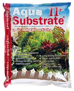 AquaSubstrate II+ Powder doskonale komponuje się z aranżacją akwarii roślinnych. Produkt dostępny jest w kolorze czarnym oraz ciemno-brązowym, pakowany jest w torby 1,8 kg (około 2 litrów). W nowo zakładanym akwarium należy pokryć powierzchnię dna ok. 5-6 cm warstwą AquaSubstrate II+. Najlepsze efekty w pielęgnacji roślin uzyskuje się nawożąc je równolegle seria nawozów płynnych Planta Gainer.