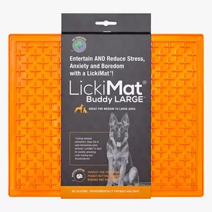Mata do lizania dla psów. Bardzo duża! Popularna mata do lizania LickiMat jest dostępna w wersji Buddy XL. Zalecana dla dużych ras. Większa powierzchnia pozwala na zastosowanie większej ilości smakołyków, dzięki czemu mata zapewni rozrywkę nawet dużym psom. LickiMat Licking Pads to nowy sposób podawania psu karmy i smakołyków.