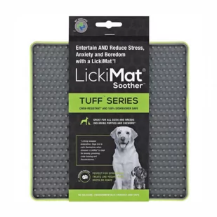 Mata LickiMat(R) SOOTHER TUFF to twarda wersja maty Soother. Posiada wypustkową strukturę, dlatego idealnie sprawdza się serwowania półpłynnych przekąsek o konsystencji zbliżonej do jogurtu czy sosu. Rozprowadź na macie karmę mokrą o luźniejszej konsystencji (niektóre rodzaje karm pozwalają nawet na rozrabianie ich z wodą) i podaj psu. Zapewnisz mu wiele radości.