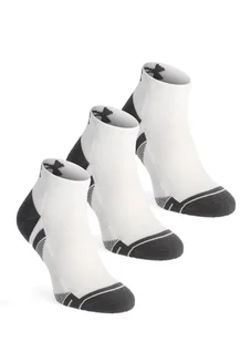 Skarpety Under Armour UA Performance Tech 3-Pack Low Cut - white/white/jet gray to model o wysokości za kostkę, który sprawdzi się podczas treningów. W zestawie znajdziesz aż 3 pary szybkoschnących skarpet. Skarpety Under Armour UA Performance Tech 3-Pack Low Cut - white/white/jet gray oferują średni poziom amortyzacji, który znacząco wpływa na komfort podczas intensywnych aktywności. Wsparcie łuku stopy to kolejna istotna cecha, która zapewni ochronę stóp w czasie ruchu. Siatkowe panele umieszczone strategicznie wspomagają wentylację, dzięki czemu skóra pozostaje sucha.