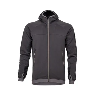 Dopasowana bluza z elastycznego polaru zapinana na zamek. Wyposażona w mankiety z możliwością przełożenia kciuka oraz niewielki, dopasowany kaptur.