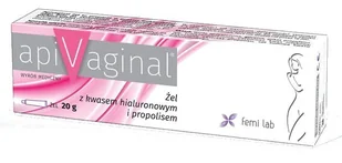 Formułę żelu tworzy kwas hialuronowy oraz propolis. Wyrób medyczny Apivaginal żel z kwasem hialuronowym oraz propolis przeznaczony jest do stosowania na zewnętrzne narządy płciowe kobiet. Jest to mukoadhezyjny żel, który nawilża śluzówkę, ponadto w kontakcie z nią tworzy ochronną warstwę o unikalnych właściwościach - wysokoelastycznych i nawilżających. Dodatkowo preparat sprzyja regeneracji tkanek oraz przyczynia się do złagodzenia objawów stanu zapalnego umiejscowionego w okolicy pochwy i warg sromowych - zmniejsza podrażnienie, zaczerwienienie, pieczenie i świąd. Żel ułatwia również powrót nabłonka do naturalnego stanu fizjologicznego.